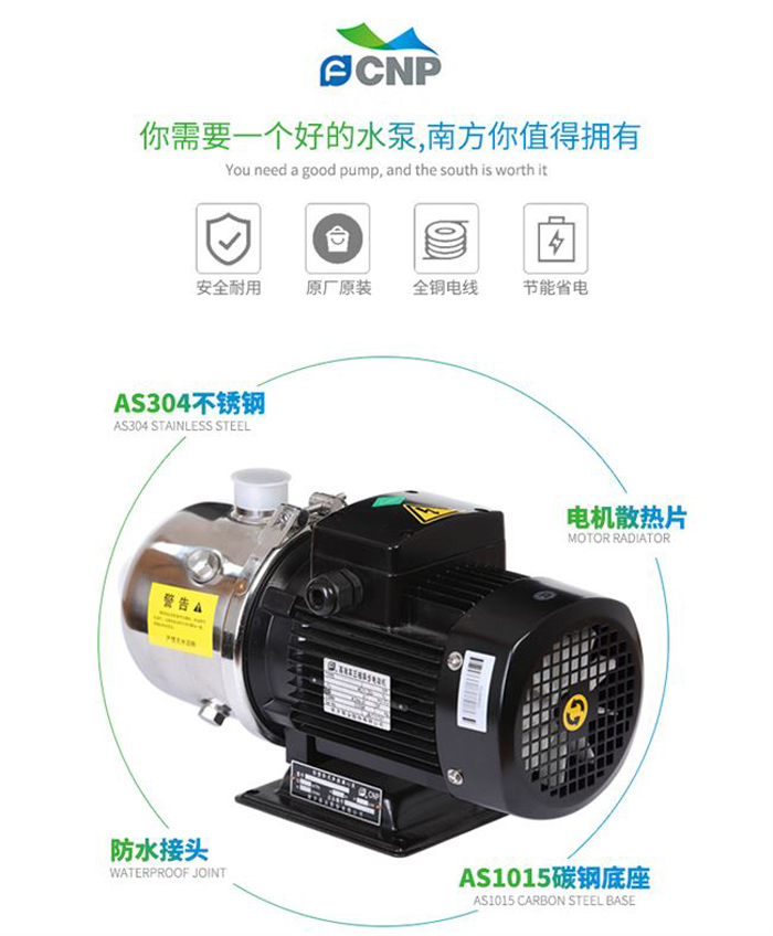 南方CHL,CHLK,CHLF(T)非自吸輕型臥式多級離心泵,葉輪導葉采用不銹鋼板沖壓焊接制成,配加長軸電機,軸向入口和徑向出口。